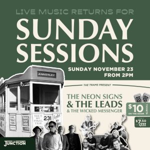 LIVE MUSIC IS BACK! The Trams present live music with THE NEON SIGNS & THE LEADS & THE WICKED MESSENGER! Get ready for a fantastic