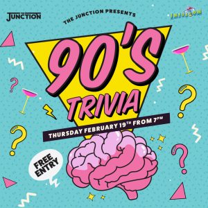 90s TRIVIA NIGHT AT THE JUNCTION! THURSDAY FEBRUARY 19TH 2026 FROM 7PM Join us for a night of trivia, where you can test your knowledge